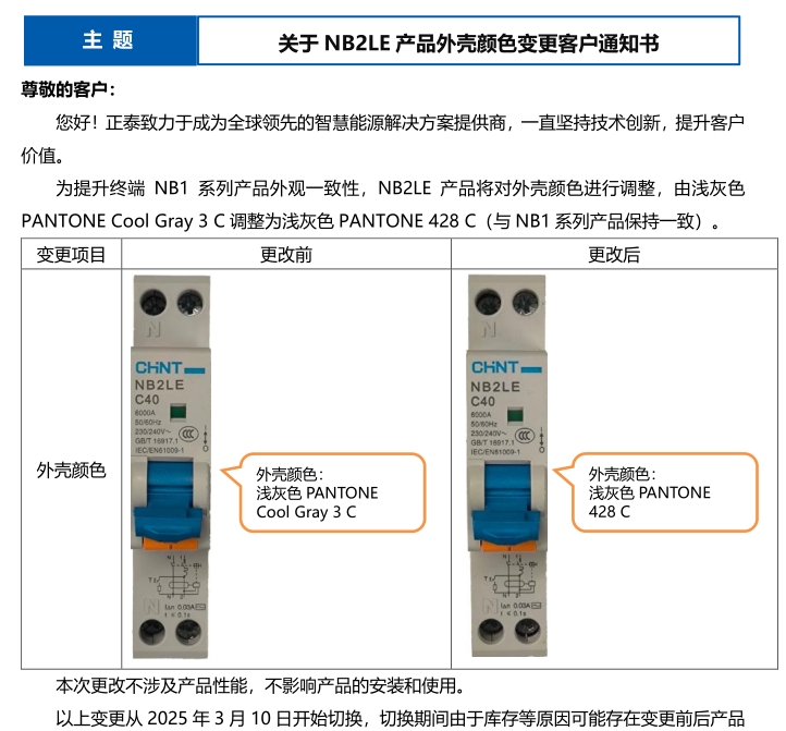 關(guān)于 NB2LE 產(chǎn)品外殼顏色變更客戶(hù)通知書(shū)