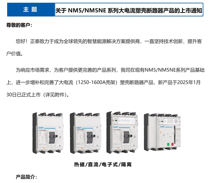 關(guān)于 NM5/NM5NE 系列大電流塑殼斷路器產(chǎn)品的上市通知