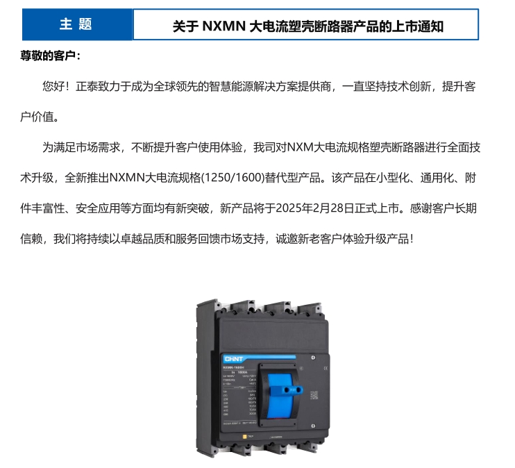 關(guān)于 NXMN 大電流塑殼斷路器產(chǎn)品的上市通知