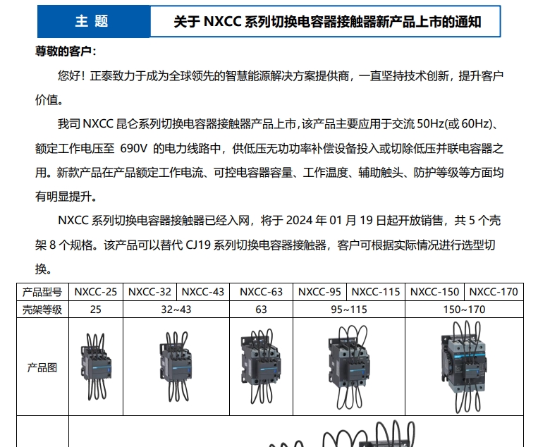關(guān)于 NXCC 系列切換電容器接觸器新產(chǎn)品上市的通知