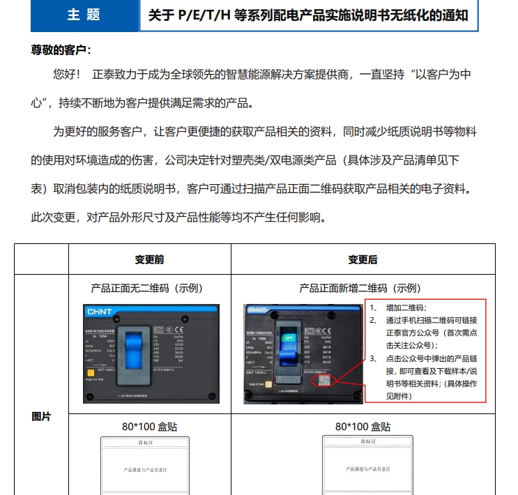 關(guān)于 P/E/T/H 等系列配電產(chǎn)品實(shí)施說(shuō)明書(shū)無(wú)紙化的通知