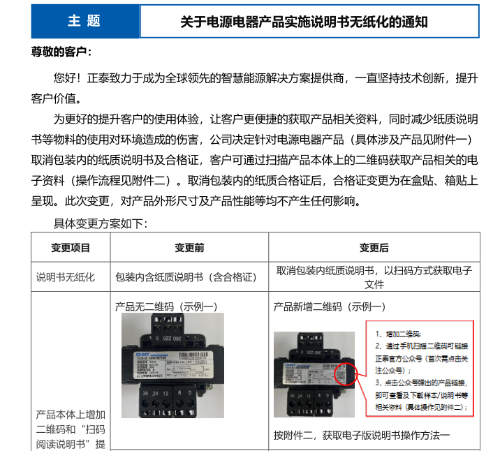 關(guān)于電源電器產(chǎn)品實(shí)施說明書無紙化的通知